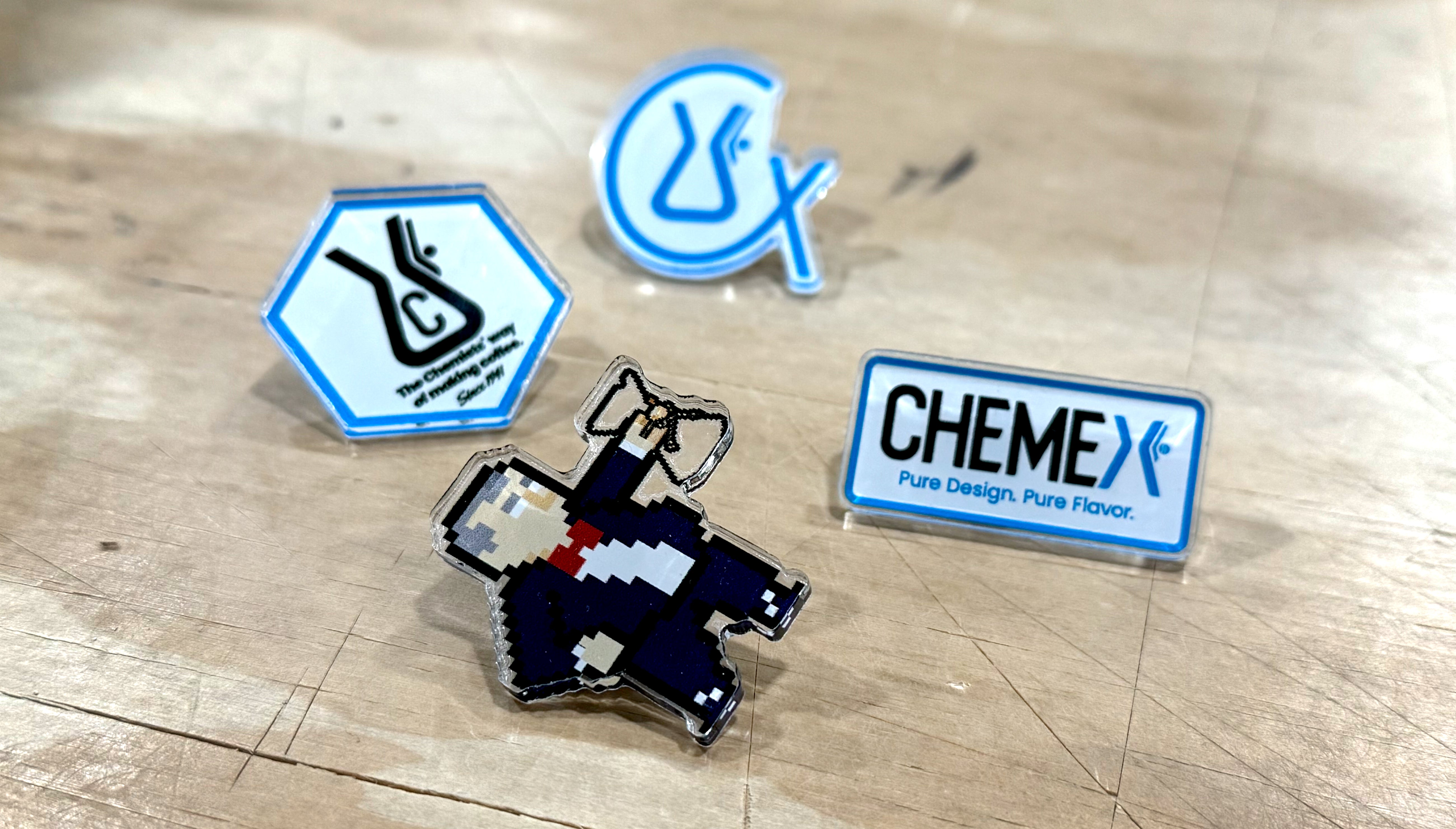 These are the quiet details that let the brand live beyond the brew. Thoughtfully designed pieces—stickers, pins, prints, and everyday objects—created with the same care, restraint, and purpose as our coffeemakers themselves. Each item is a small expression of design culture, chemistry, and ritual—made to be collected, worn, used, and noticed in the spaces where coffee becomes part of daily life.